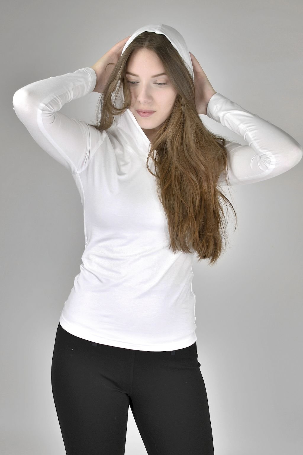 BÍLÉ DÁMSKÉ TRIKO S KAPUCÍ DLOUHÝ RUKÁV