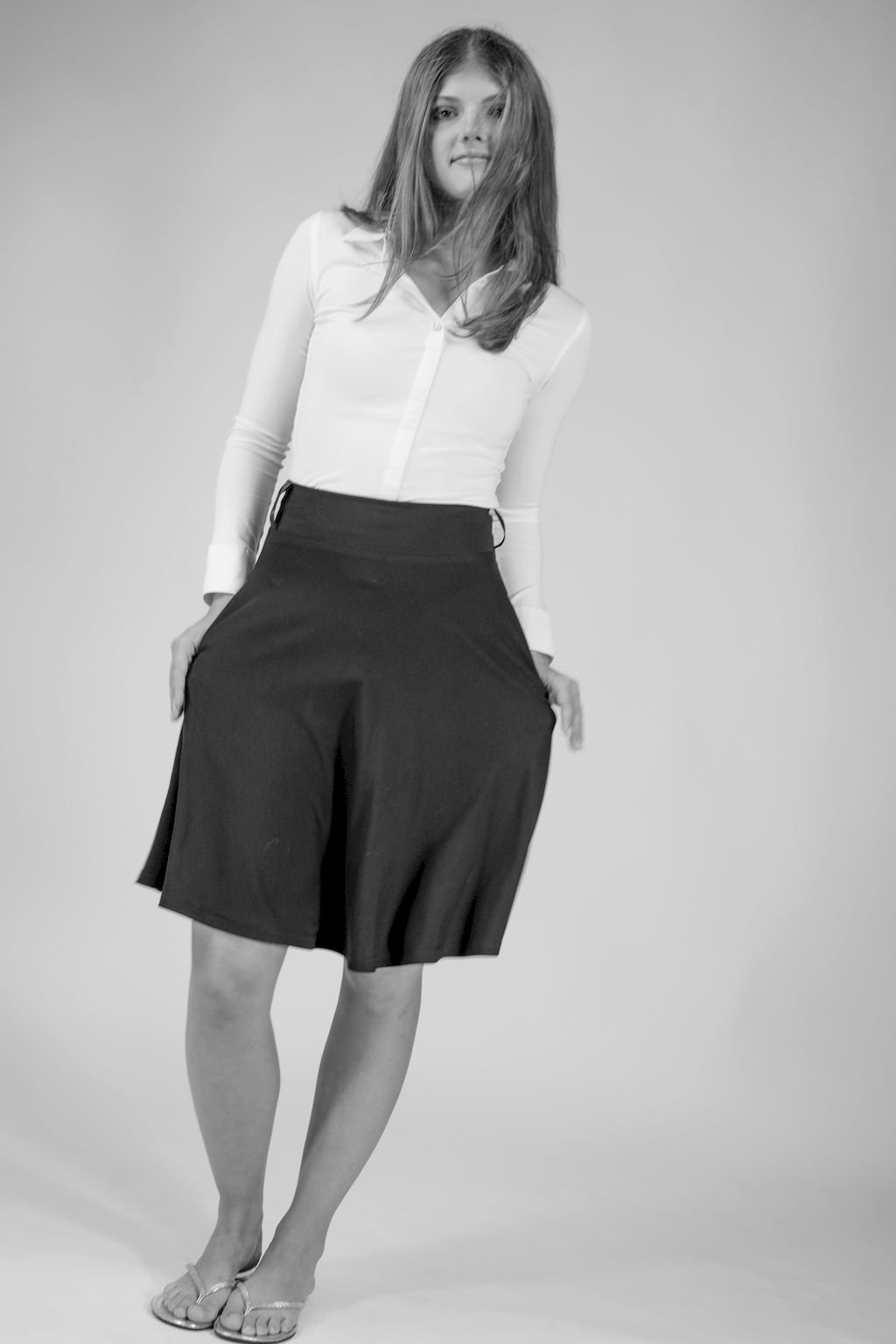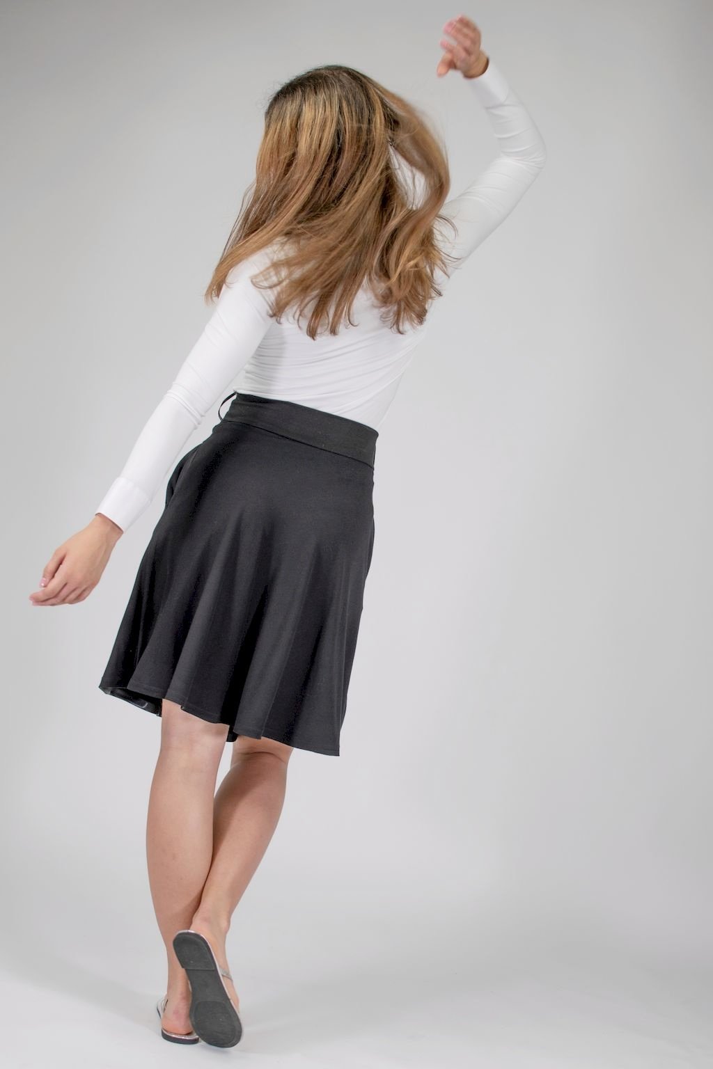 Úpletová černá sukně, je vyrobena ze speciálně upraveného materiálu, z opalovaného viskózového vlákna. Toto vlákno je extrémně odolné vůči oděru. A právě díky této vlastnosti si produkt zachovává po dlouhý čas svůj luxusní vzhled. Je proto vhodný pro jakoukoliv příležitost, lze ho kombinovat v nekonečném počtu outfitů.
