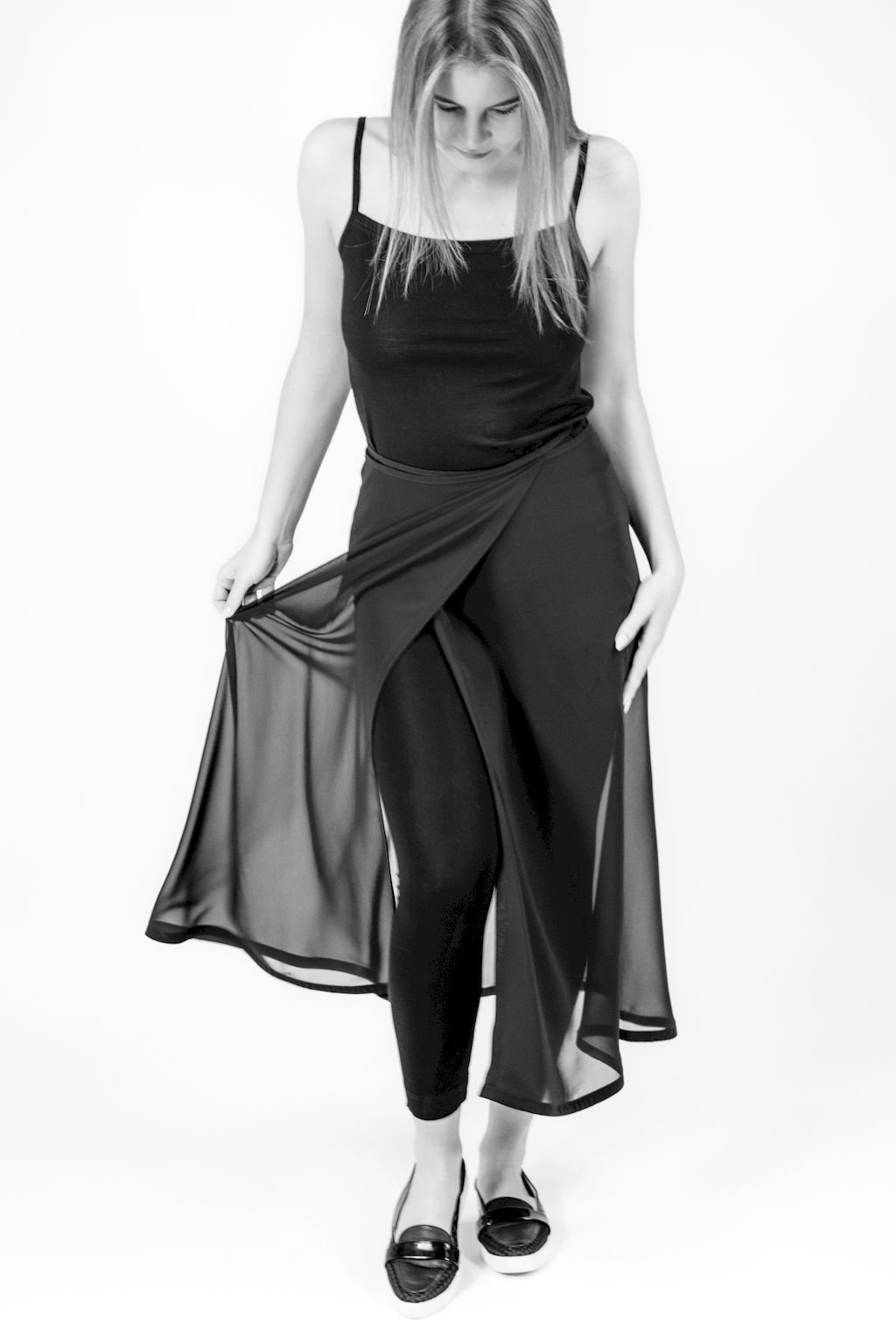 Dámská, šifonová, zavinovací, maxi sukně. Lehoučký šifonový materiál využijete k vrstvení na legíny nebo jiné kalhoty slim střihu.