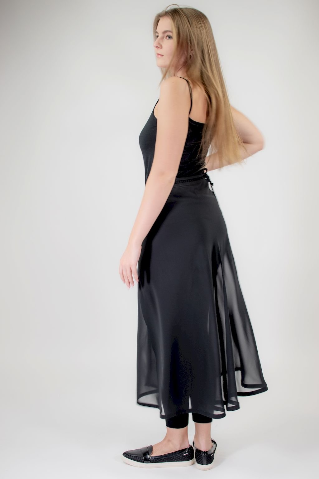 ČERNÁ ŠIFONOVÁ DLOUHÁ ZAVINOVACÍ SUKNĚ