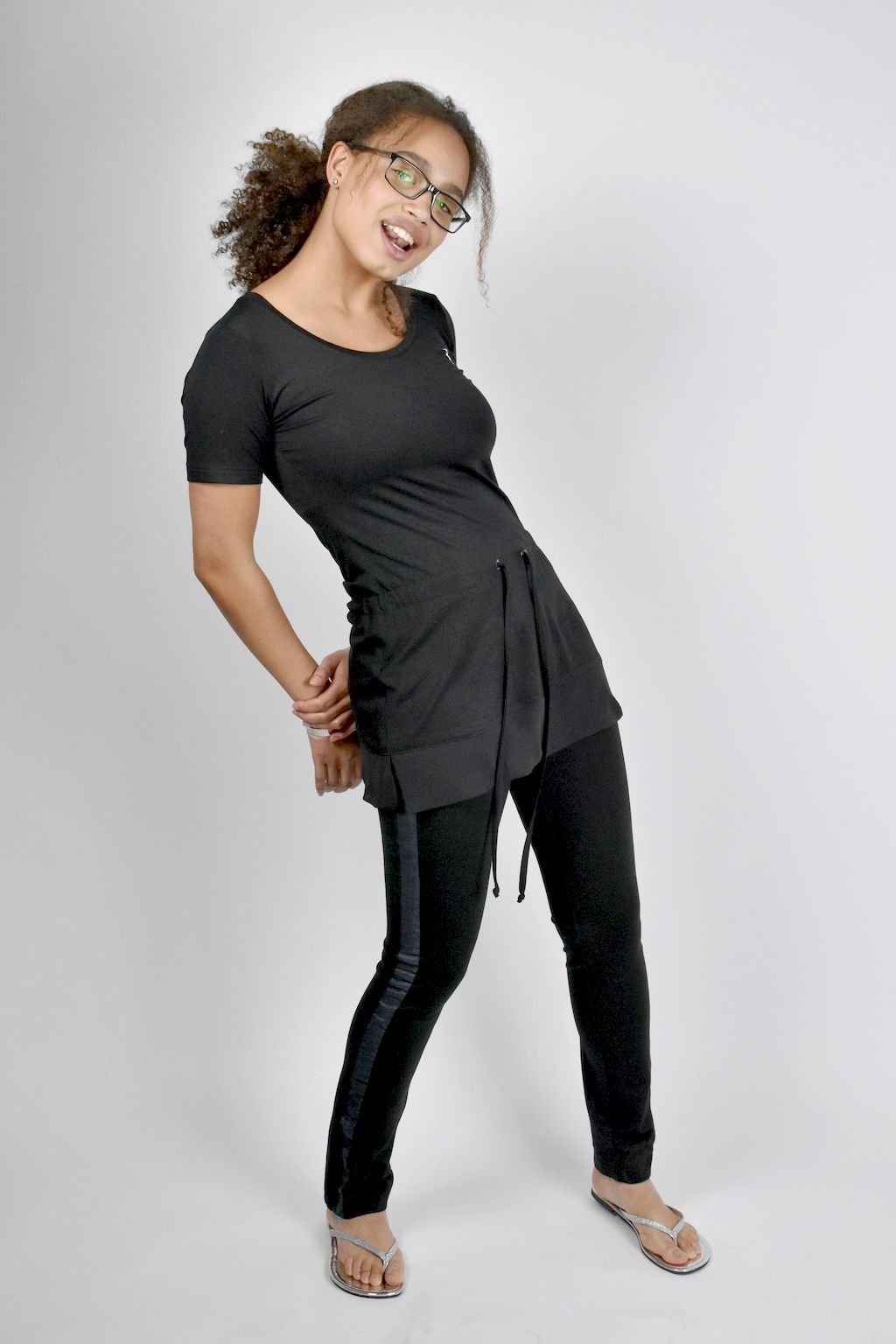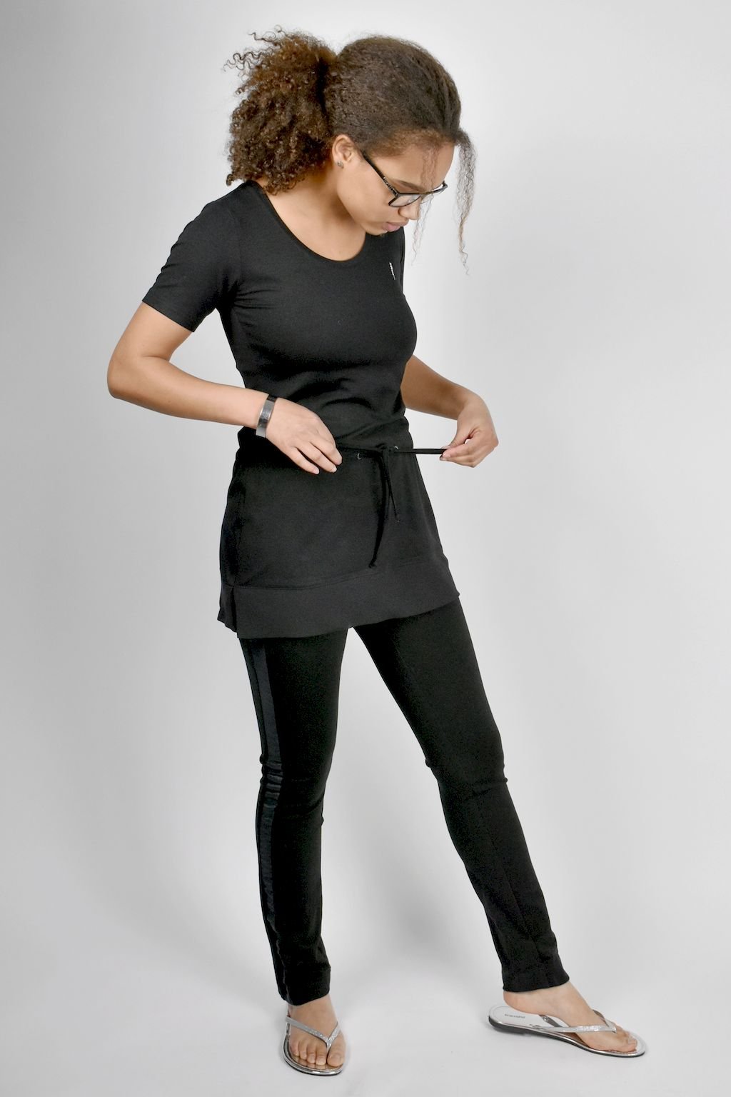 ČERNÁ TUNIKA KRÁTKÝ RUKÁV KULATÝ VÝSTŘIH VAZAČKA