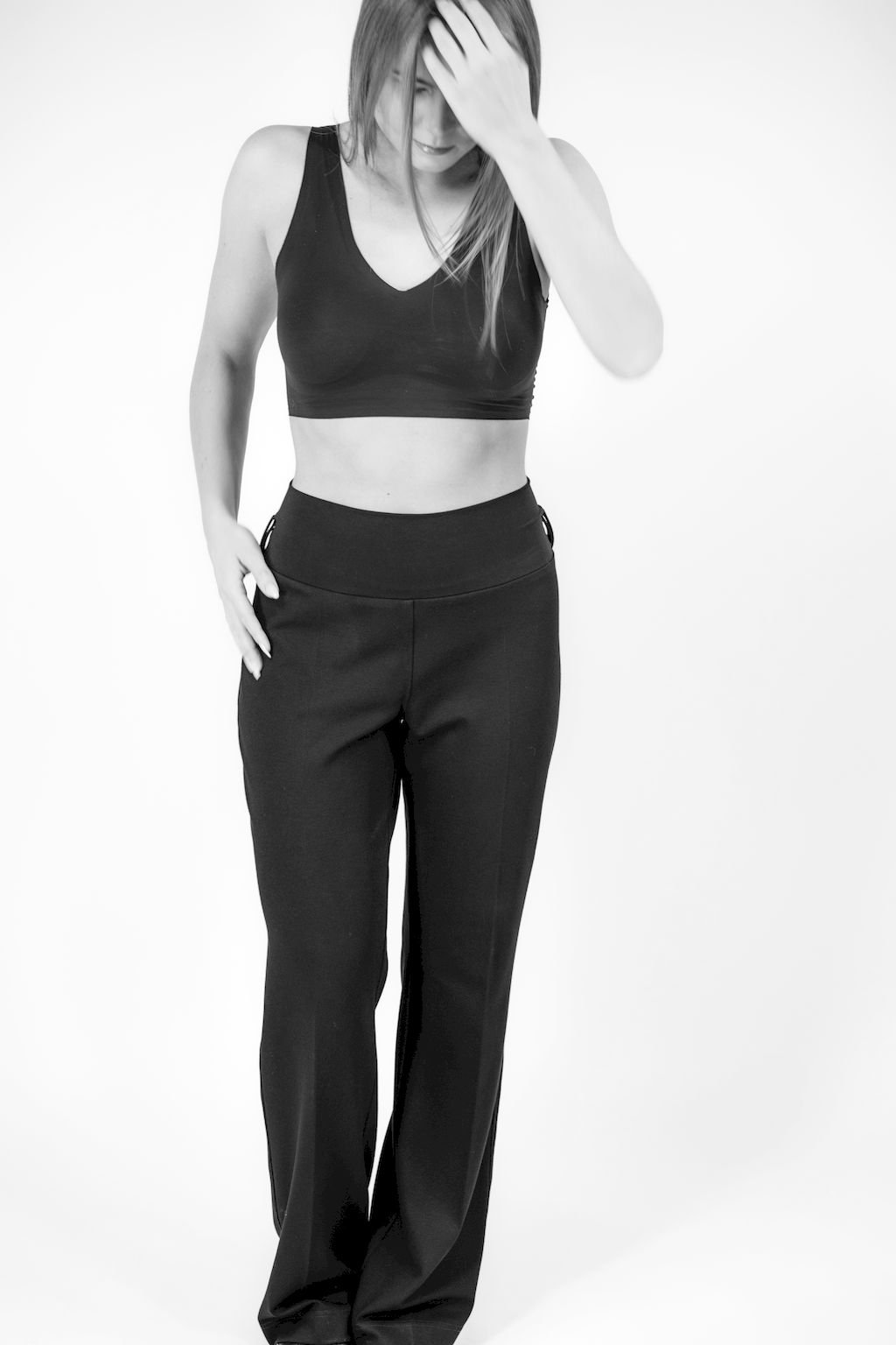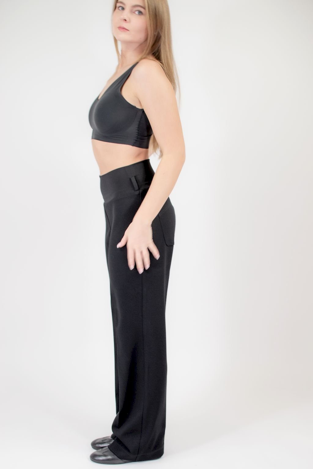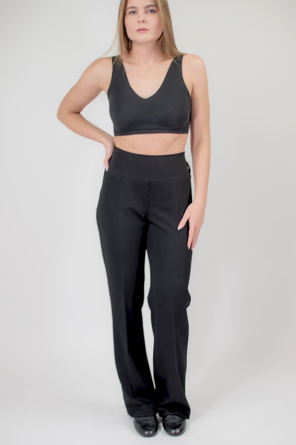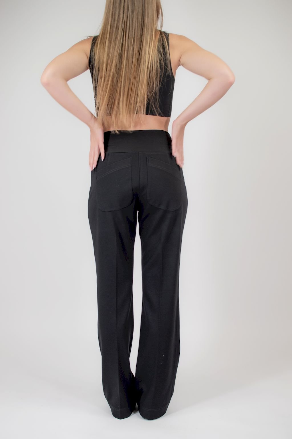 ČERNÉ DÁMSKÉ KALHOTY DO ZVONU S PRUŽNÝM PASEM