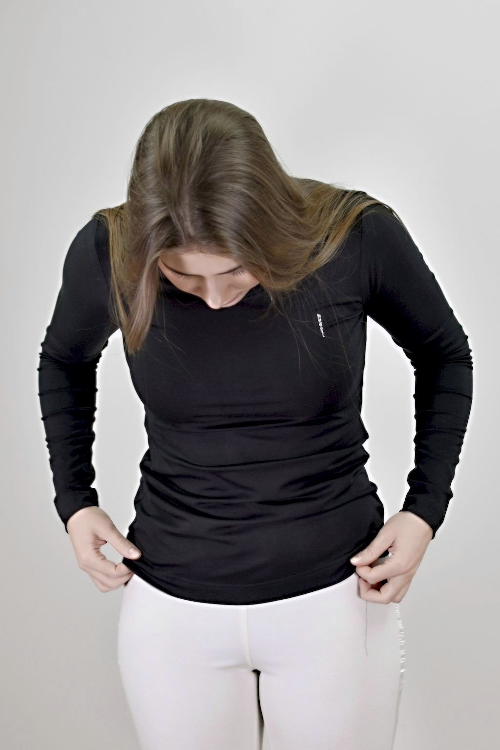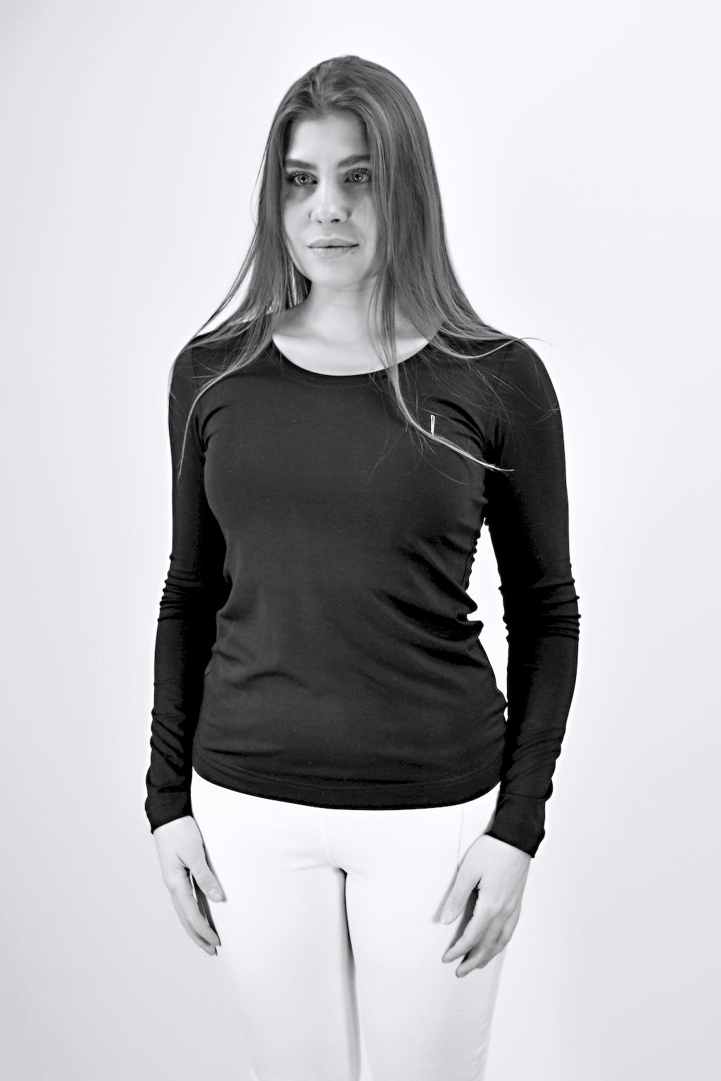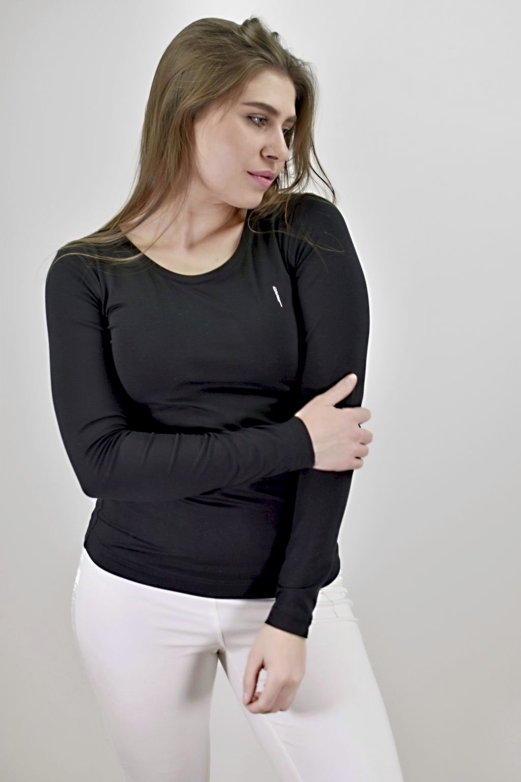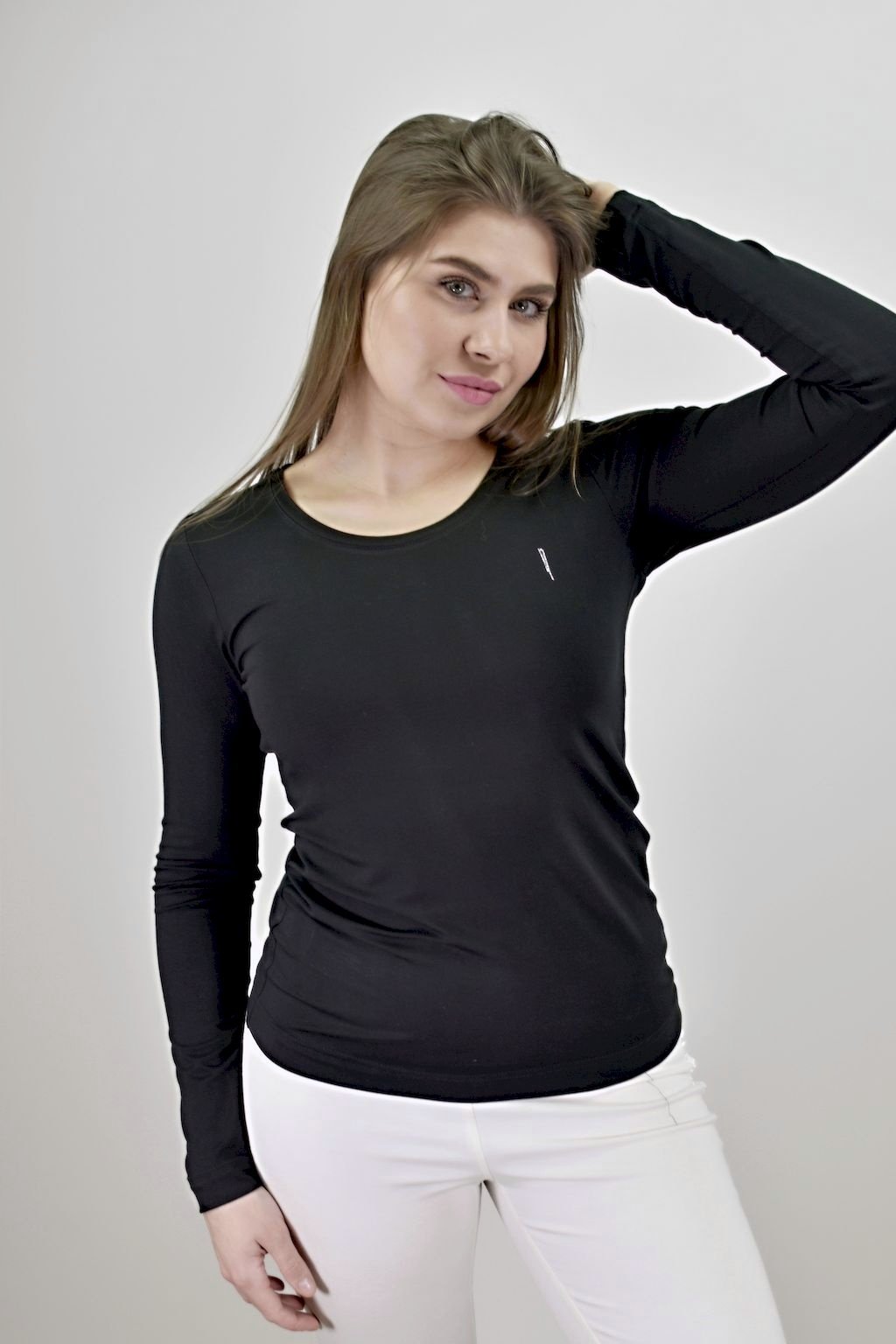ČERNÉ DÁMSKÉ TRIKO S KULATÝM VÝSTŘIHEM DLOUHÝ RUKÁV