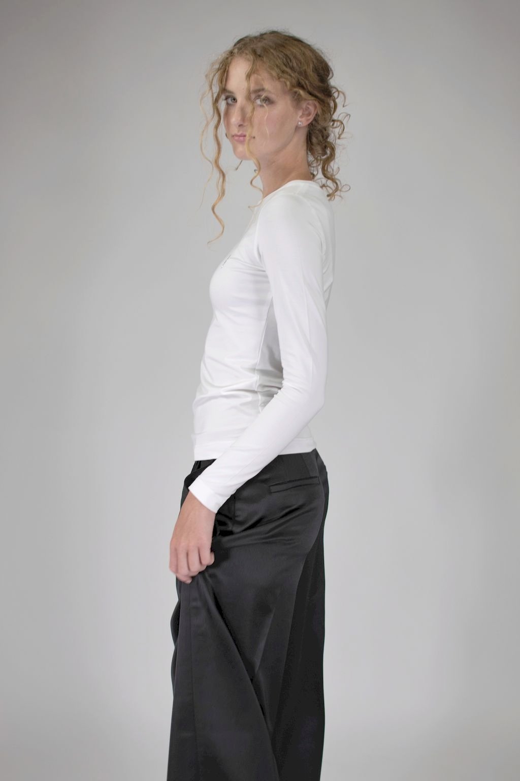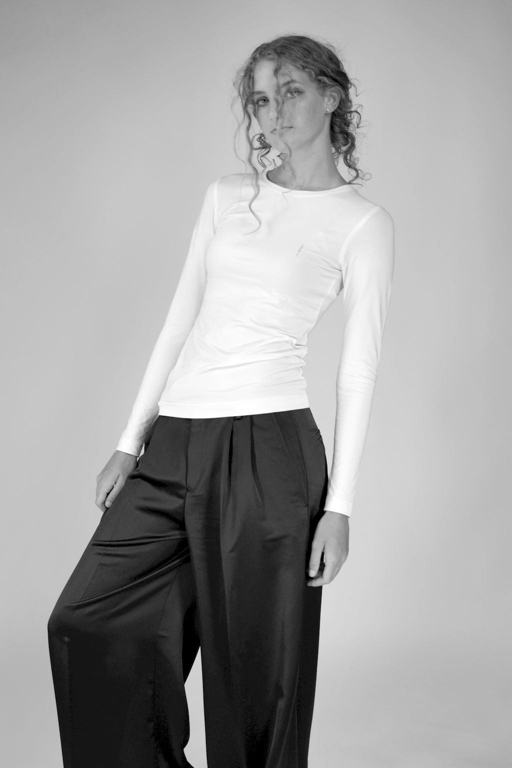 Neobyčejně obyčejné, klasické tričko s dlouhým rukávem je vyrobené z výjimečně upraveného viskózového vlákna. Toto vlákno, z něhož je vyrobeno je extrémně odolné vůči oděru. A právě díky této vlastnosti si triko zachovává po dlouhý čas, při správné údržbě, svůj luxusní vzhled. Je proto vhodné pro jakoukoliv příležitost, lze ho kombinovat v nekonečném počtu outfitů.