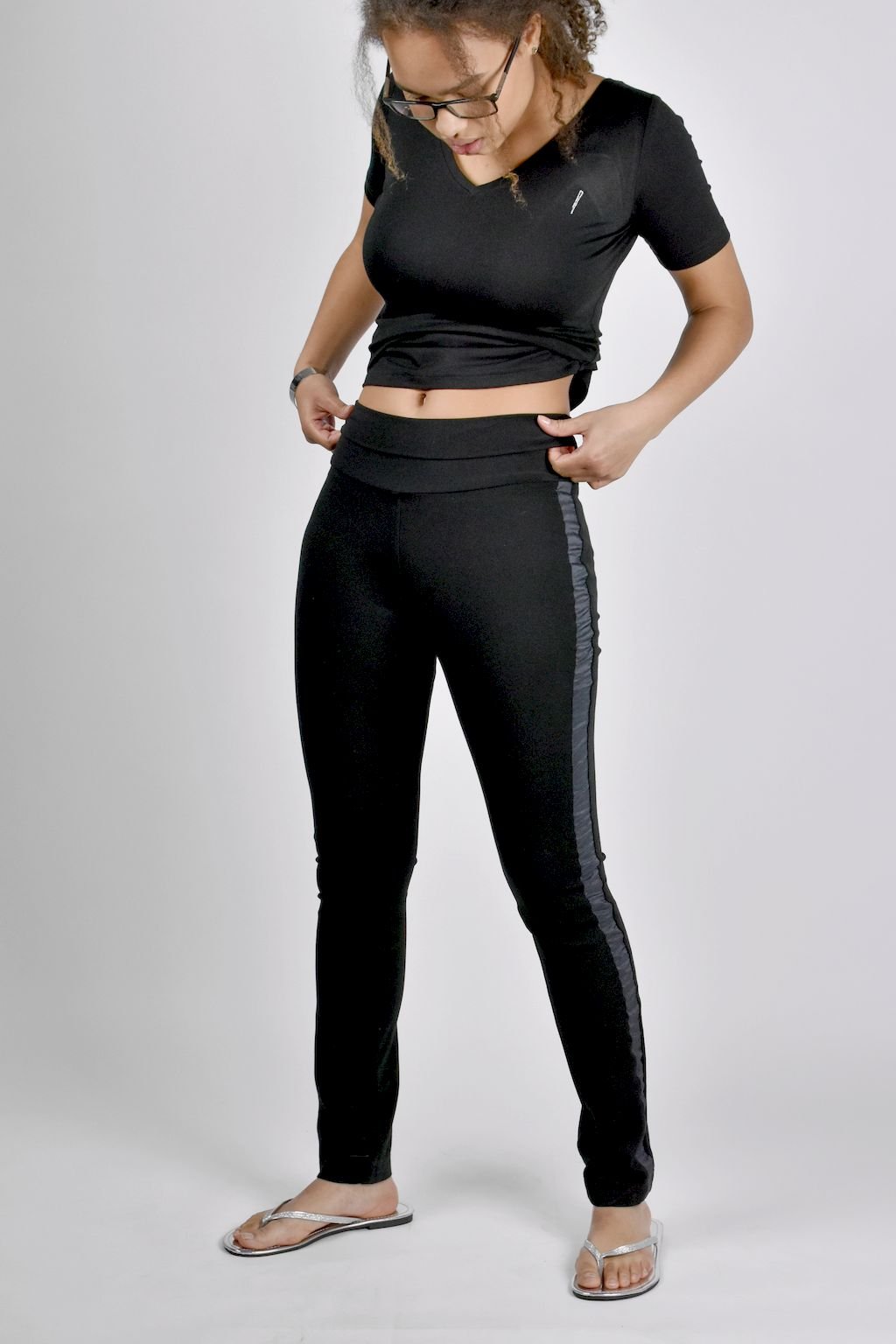 Dámské černé úzké kalhoty, jsou vyrobeny ze speciálně upraveného materiálu, z opalovaného viskózového vlákna. Toto vlákno je extrémně odolné vůči oděru. A právě díky této vlastnosti si produkt zachovává po dlouhý čas svůj luxusní vzhled. Je proto vhodný pro jakoukoliv příležitost, lze ho kombinovat v nekonečném počtu outfitů.