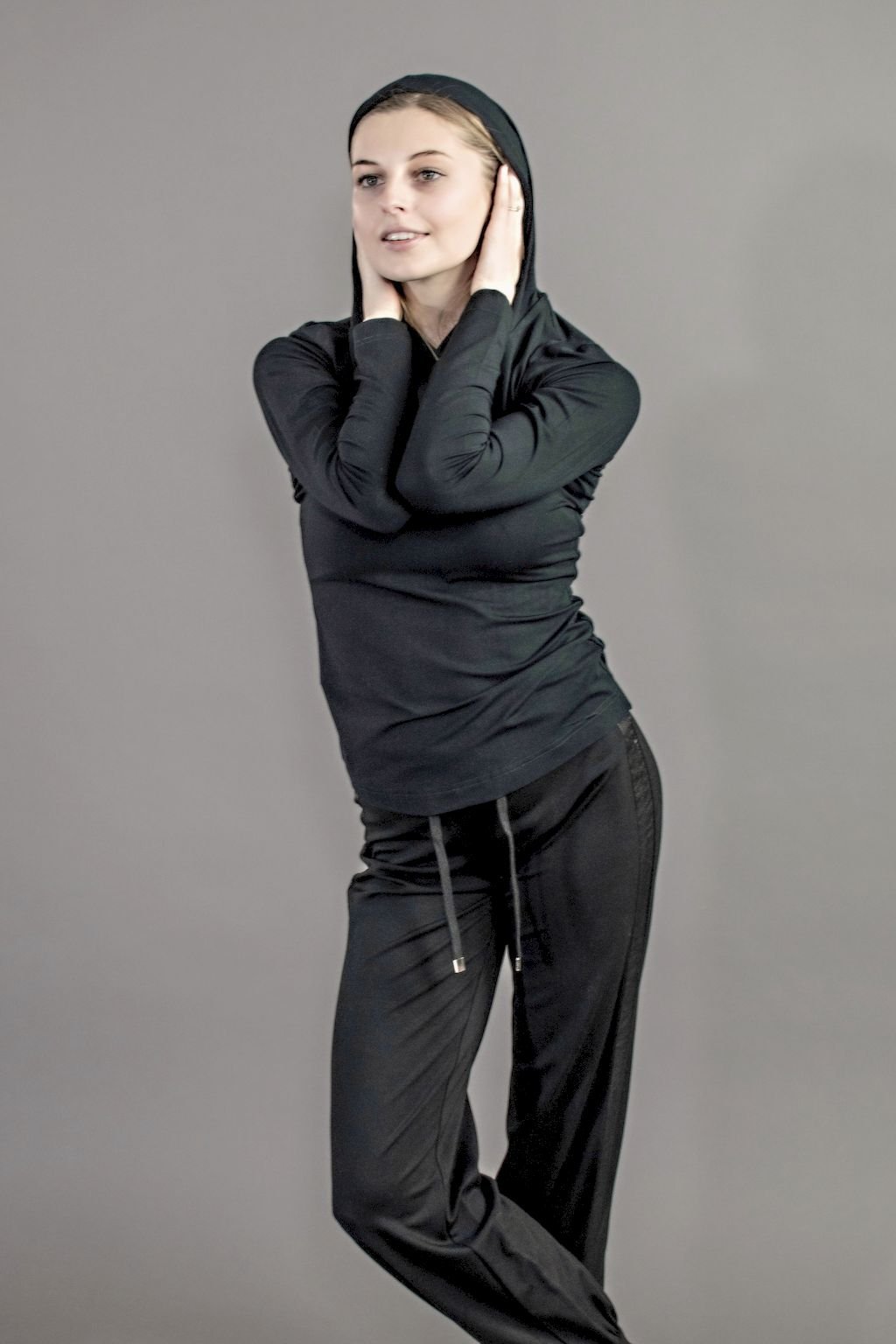 DÁMSKÉ ČERNÉ TRIKO S KAPUCÍ DLOUHÝ RUKÁV