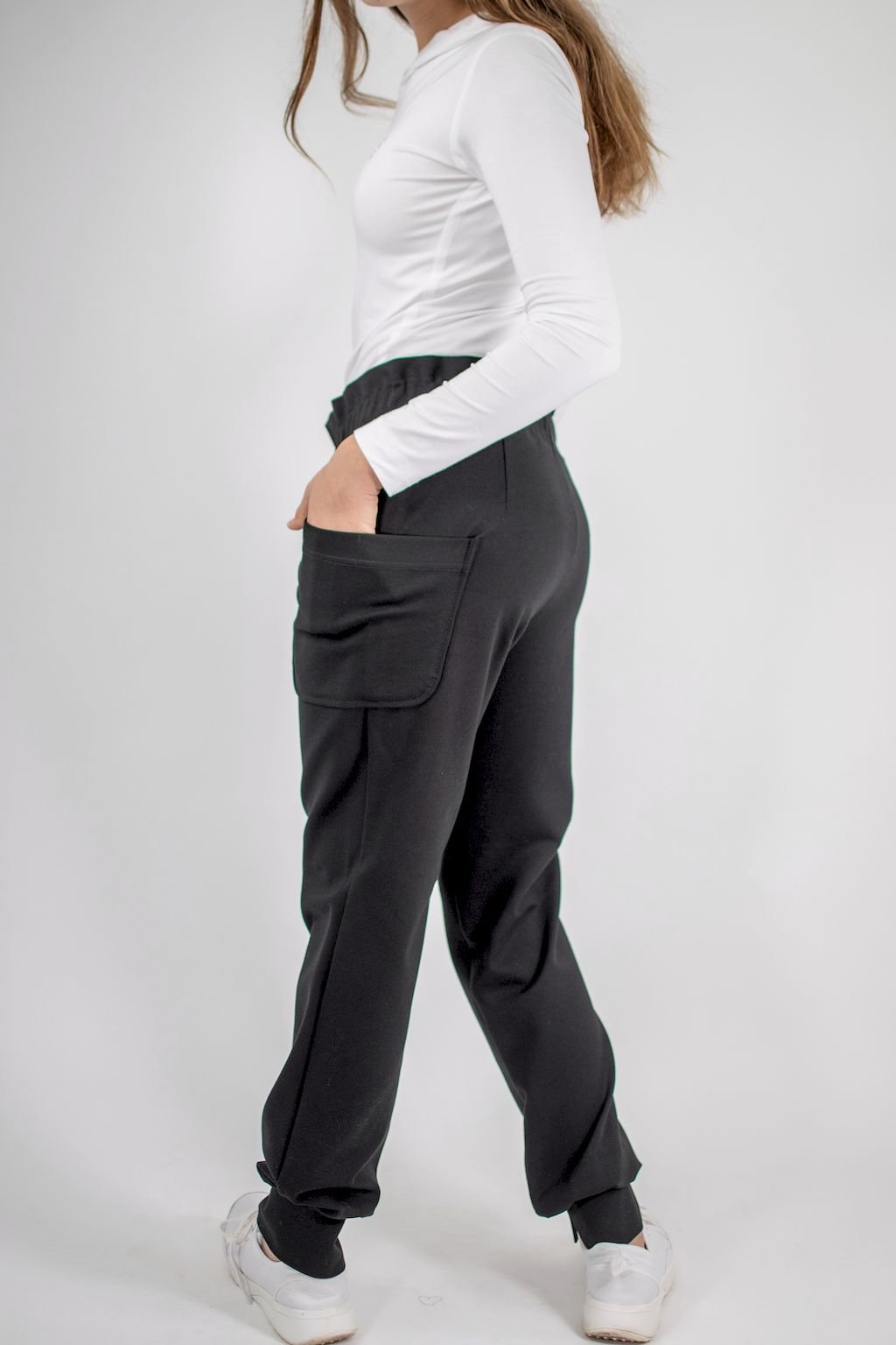 Stylové, pohodlné úpletové kalhoty na první pohled upoutají pozornost svými plasticky navrženými nakládanými kapsami a látkovou šňůrkou protaženou v pasovém tunýlku. Jsou vyrobeny ze speciálně upraveného materiálu, z opalovaného viskózového vlákna. Toto vlákno je extrémně odolné vůči oděru. A právě díky této vlastnosti si produkt zachovává po dlouhý čas svůj luxusní vzhled.