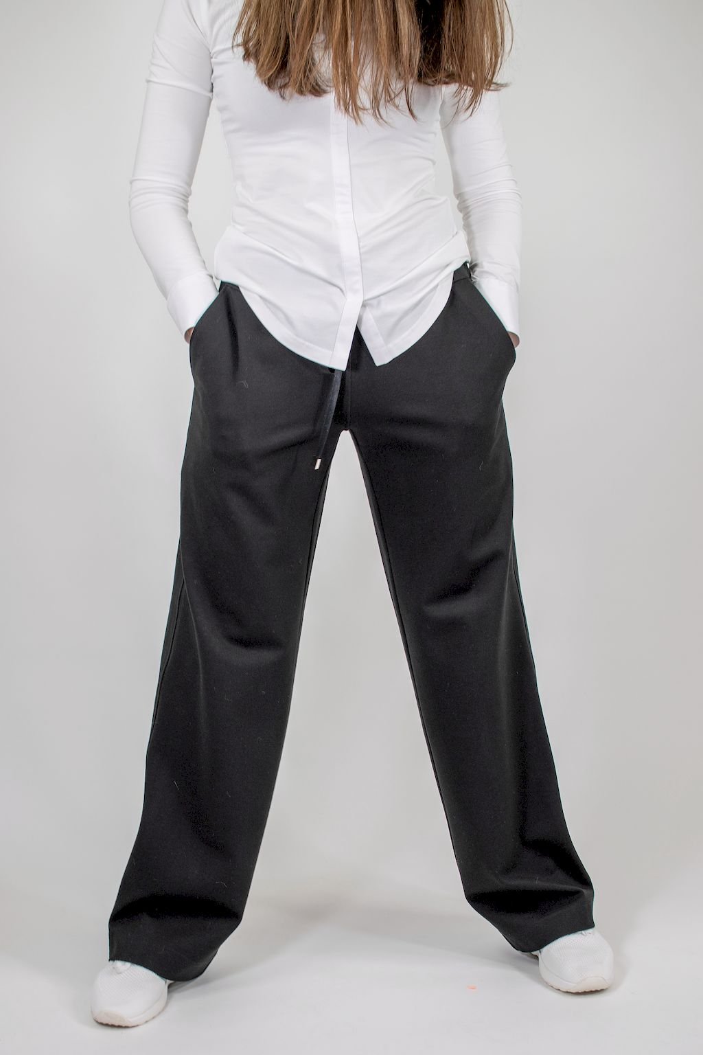 DÁMSKÉ KALHOTY ŠIROKÉHO STŘIHU S PRUŽNÝM PASEM A VAZAČKOU