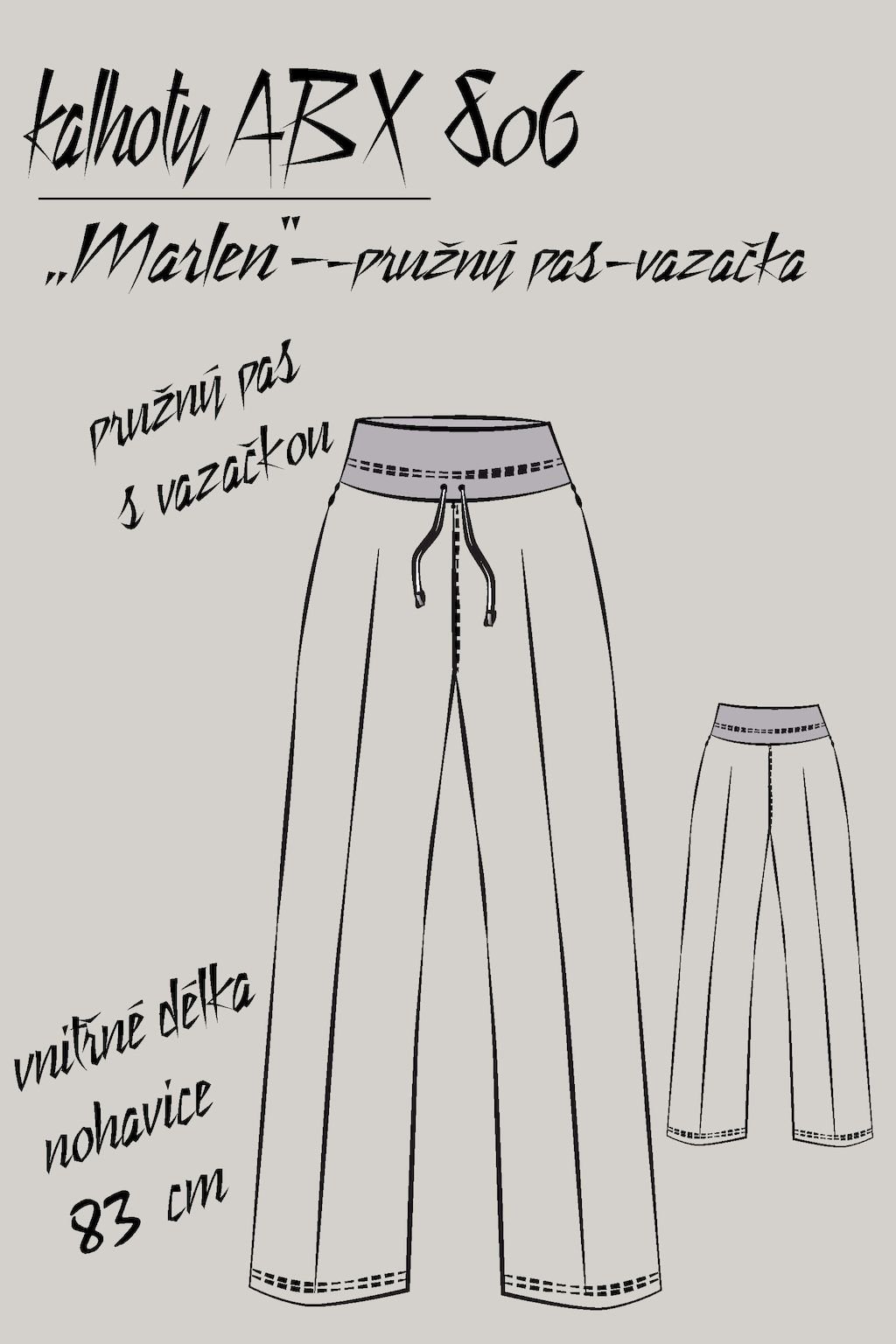 Dámské kalhoty širokého střihu ,,Marlen'' s pohodlným pružným pasem na vazačku.