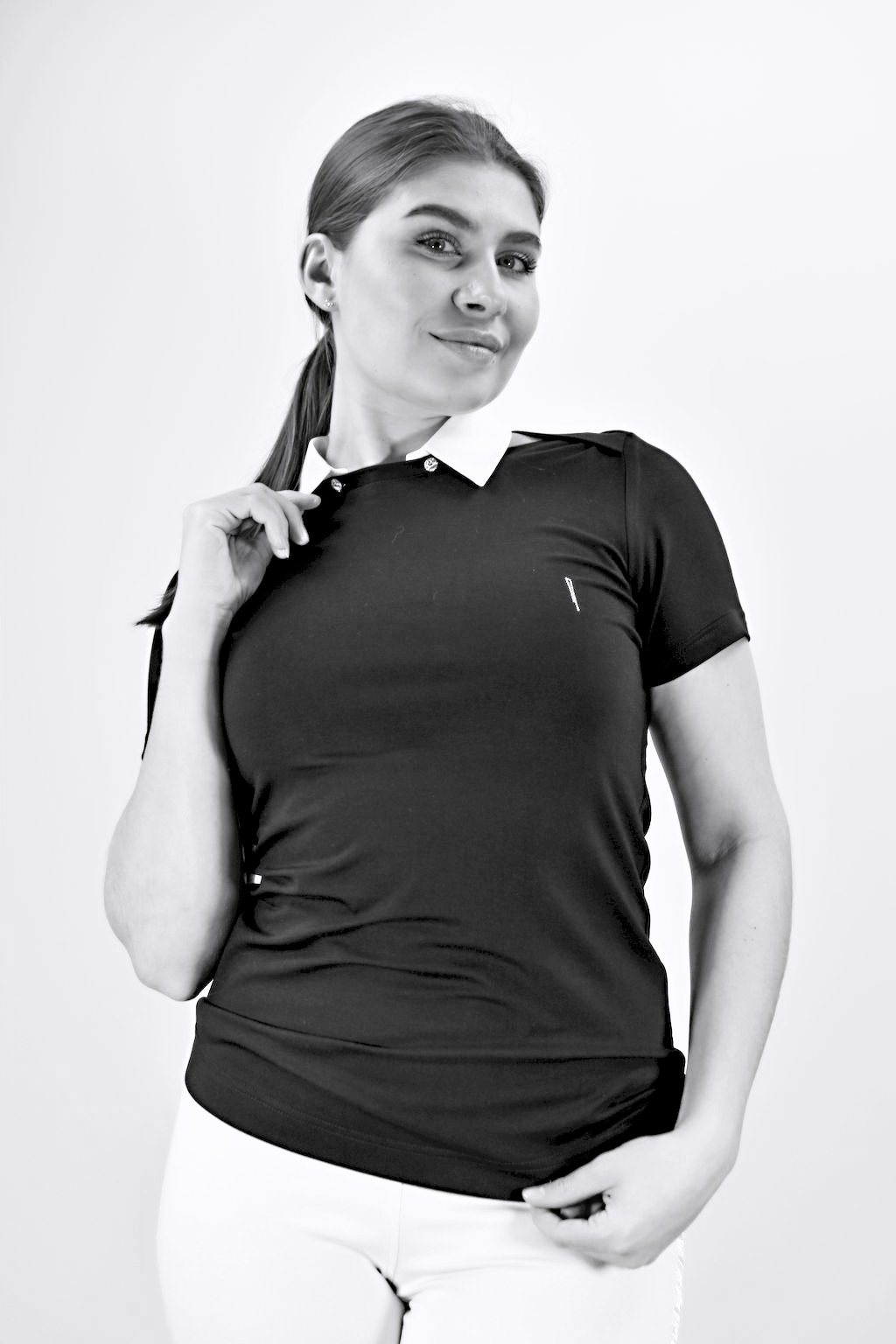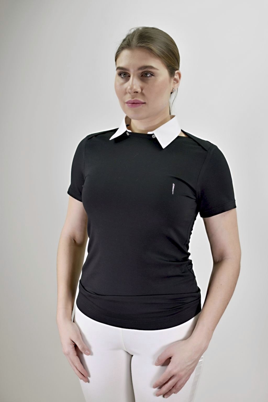 Černé triko s přívlastkem ,,věčné'' s netradičně zpracovaným lodičkovým výstřihem a krátkým rukávem, vylepšené o bílý odepínací košilový límeček, které povýší jeho vzhled na ,,elegantní''. Triko si po dlouhý čas zachovává svůj původní vzhled, vypadá tak stále "jako nové".