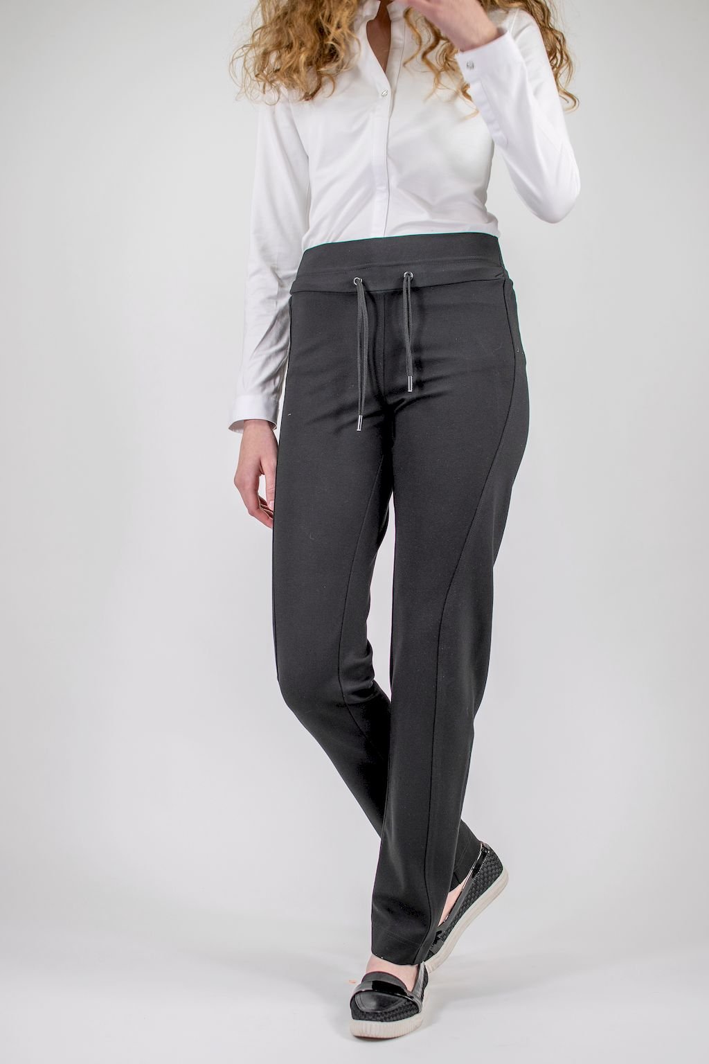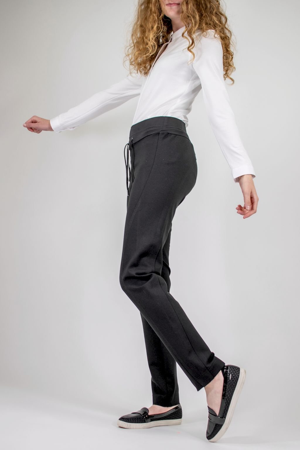 Dámské úpletové kalhoty ,,Vlnka'' úzkého třídílného střihu s pružným pasem a vazačkou, který se postará o vaše pohodlí, lichotivý, ozdobný, členící šev vaší postavu opticky zeštíhlí.