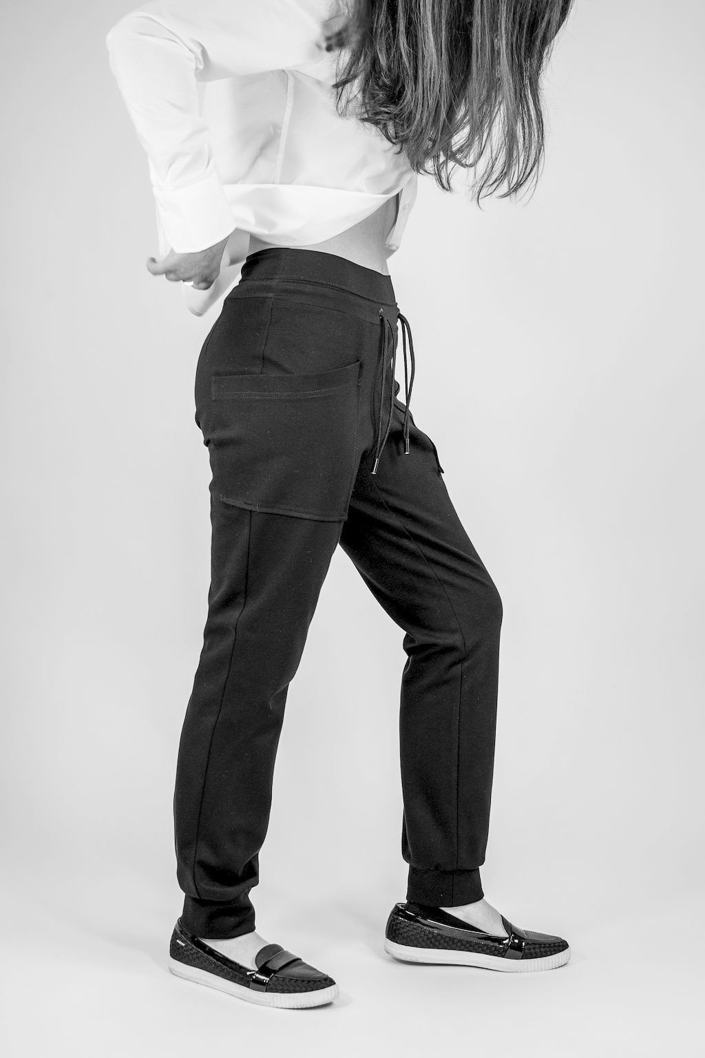Stylové, pohodlné úpletové kalhoty na první pohled upoutají pozornost svými plasticky navrženými nakládanými kapsami a látkovou šňůrkou protaženou v pasovém tunýlku. Jsou vyrobeny ze speciálně upraveného materiálu, z opalovaného viskózového vlákna. Toto vlákno je extrémně odolné vůči oděru. A právě díky této vlastnosti si produkt zachovává po dlouhý čas svůj luxusní vzhled.