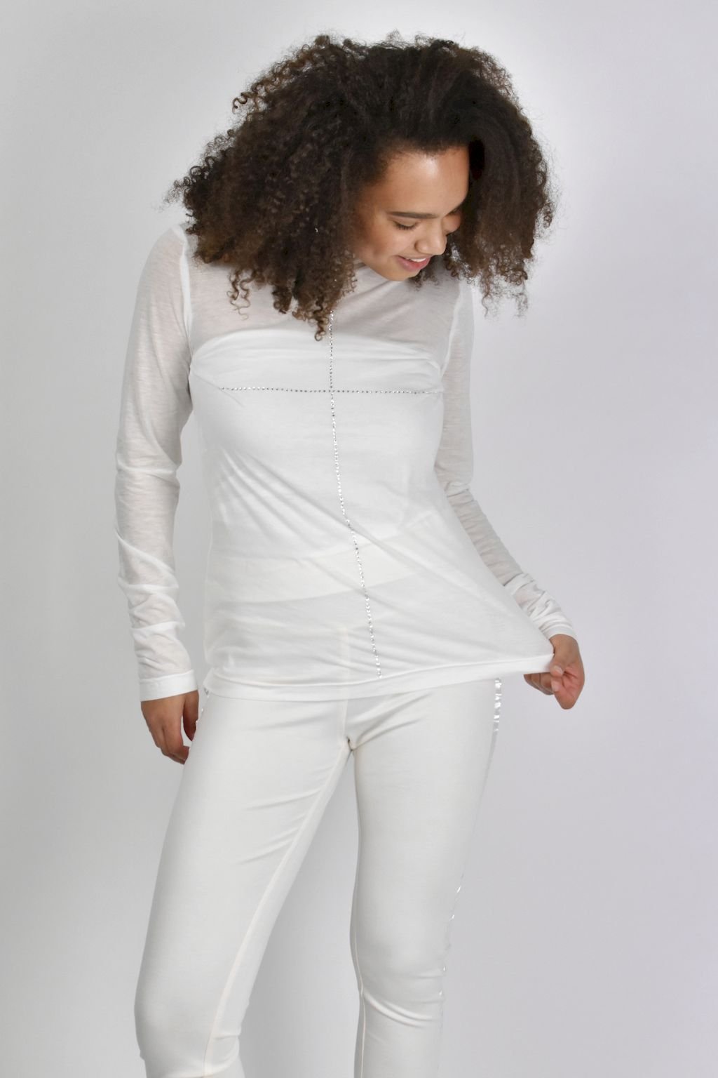 Elegantní, lehký roláček ve smetanové barvě, z lehoučkého viskózového materiálu, s aplikací broušenými čirými kamínky Swarovski.