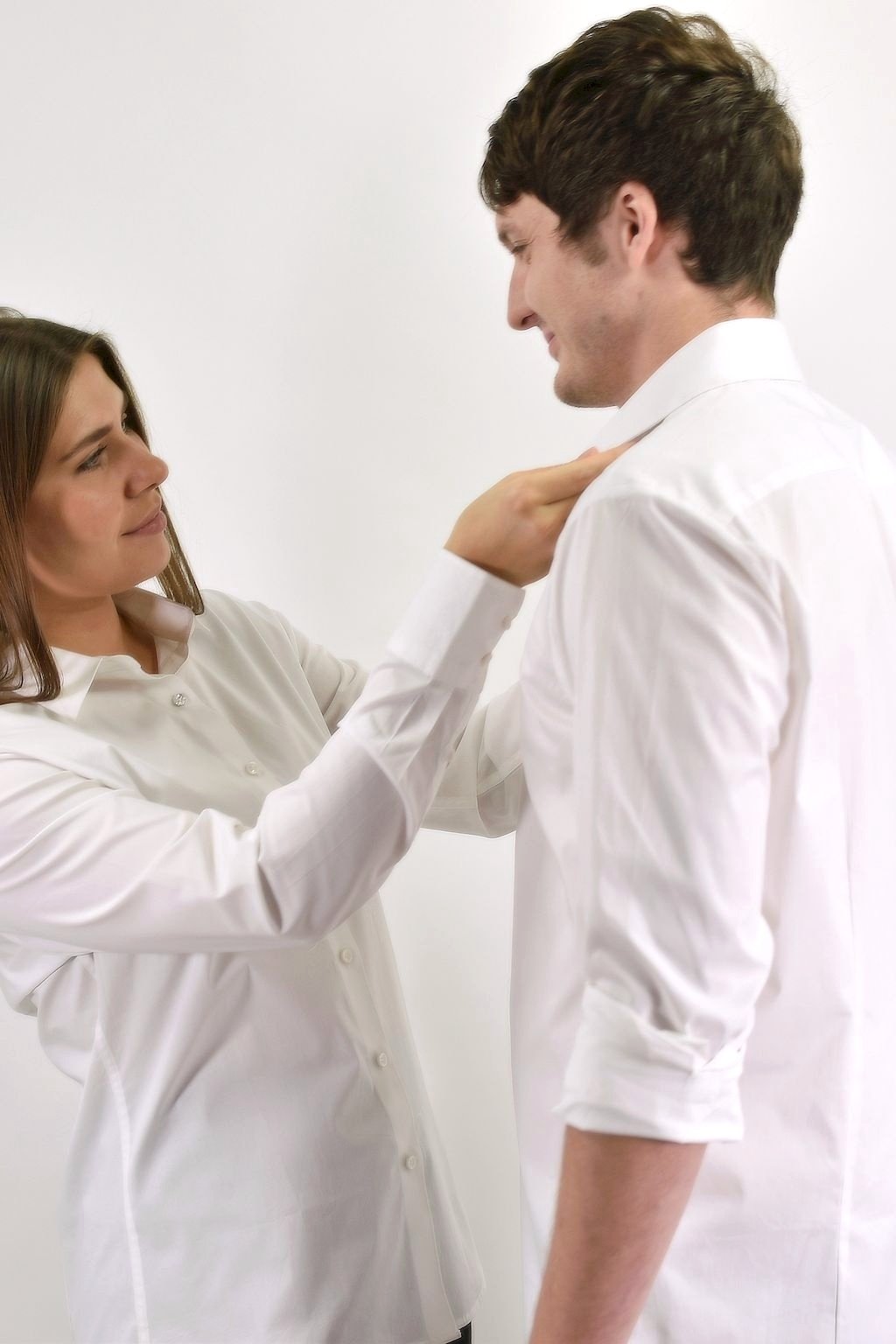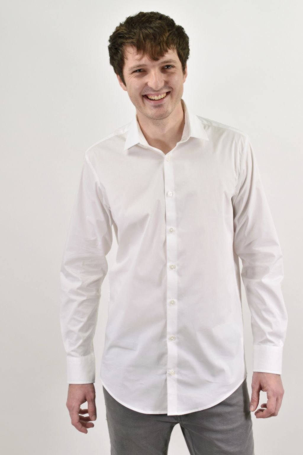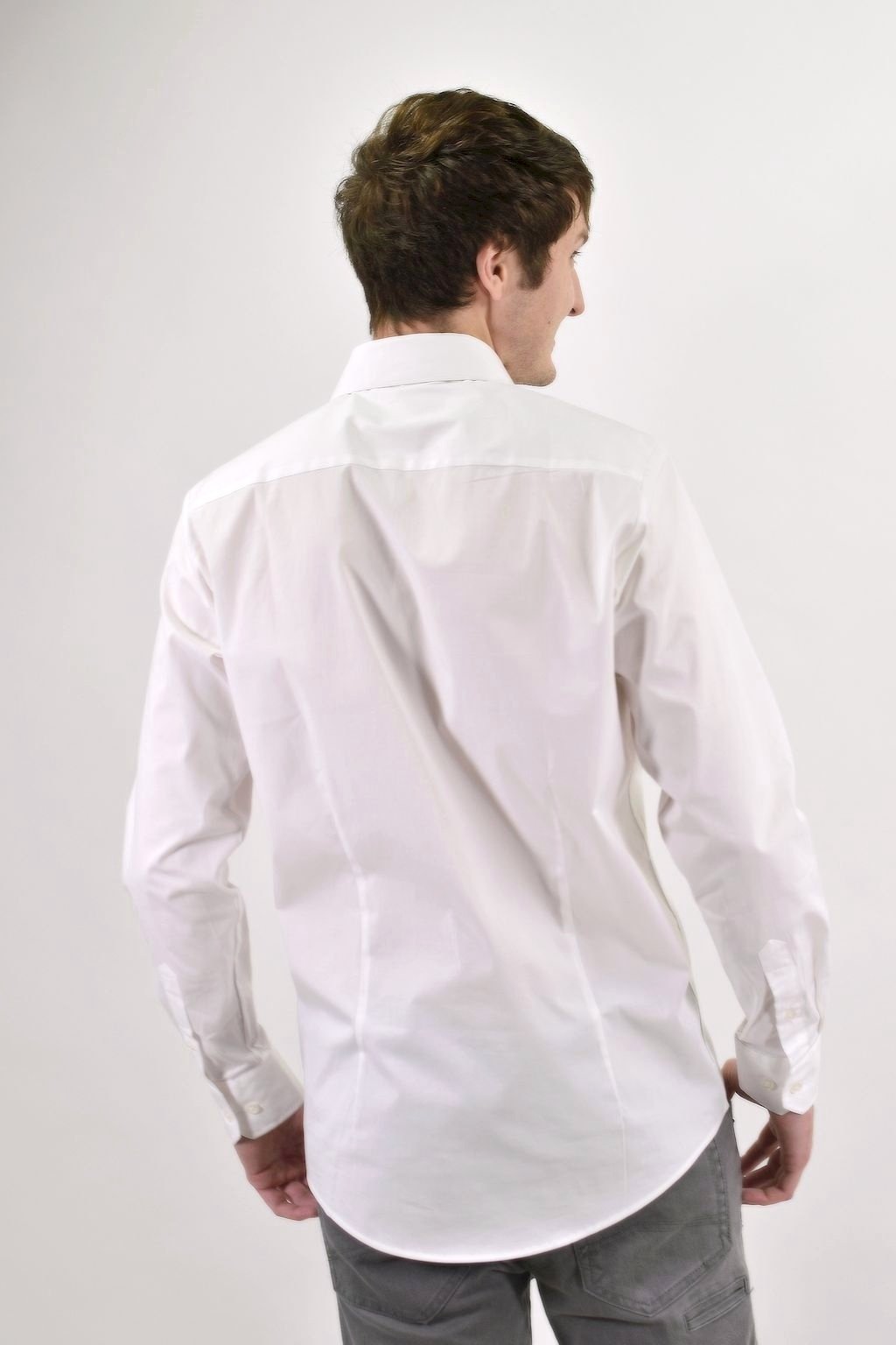 Dokonalá pánská košile mírně vypasovaného střihu, vhodná kdykoliv a kamkoliv. Sluší úplně každému muži – ještě nikdo nevymyslel lepší outfit než džíny a bílou košili!