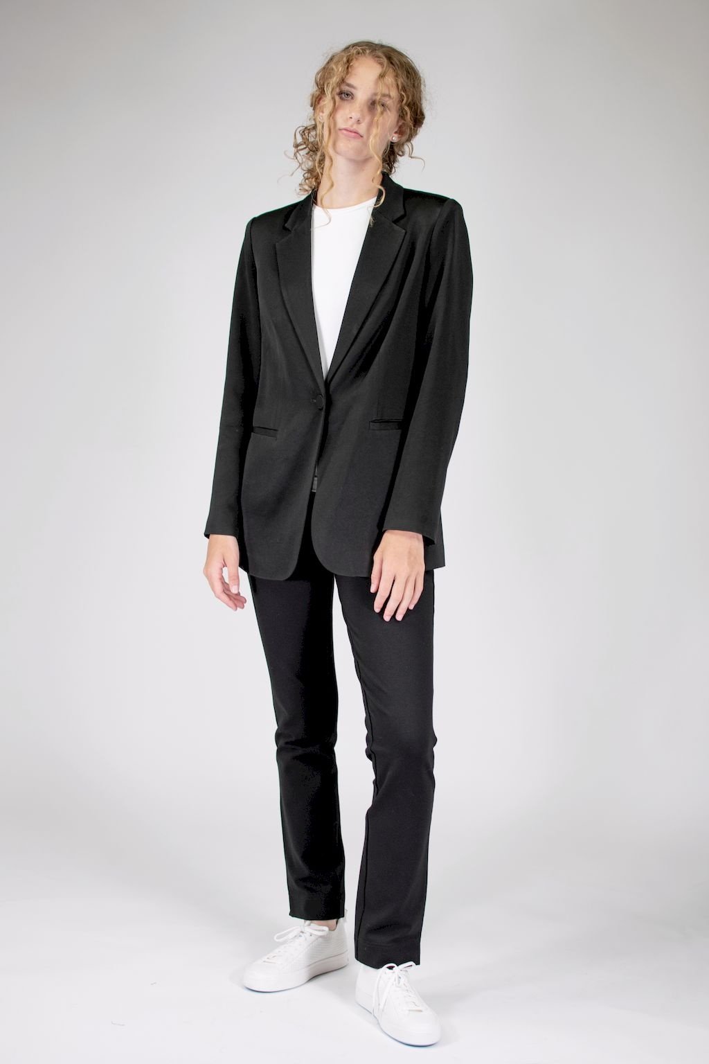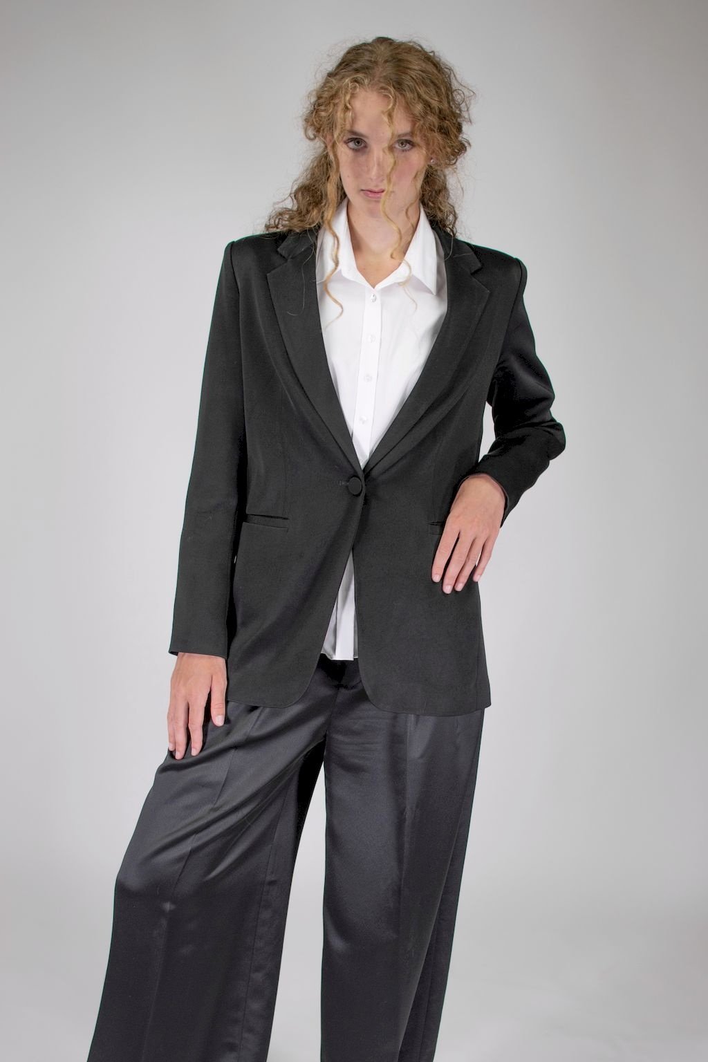 Dámské, černé, jednořadé sako s klasickou fazónou ve volném over size střihu.
