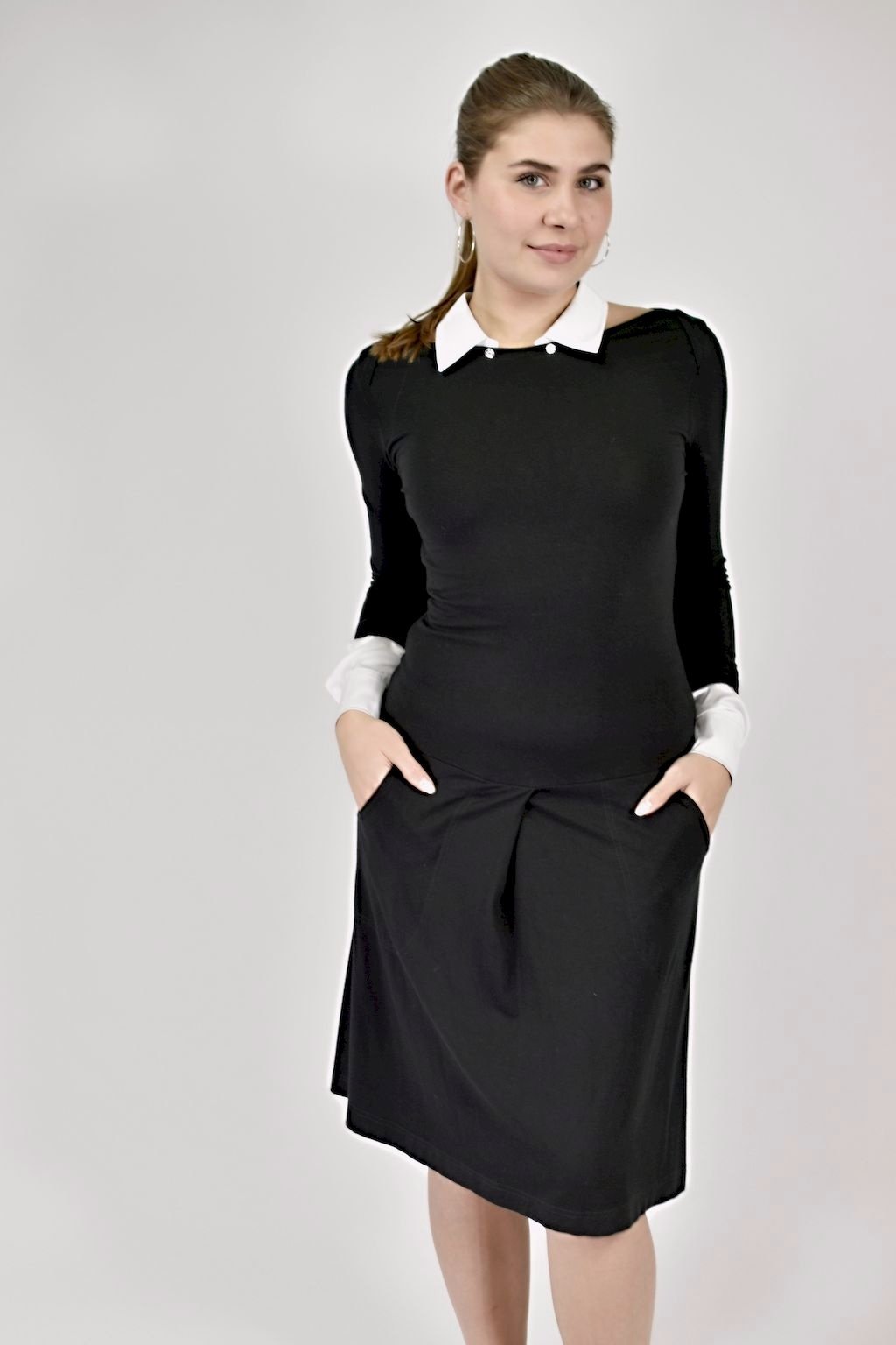 Variabilní úpletové šaty do A s odepínacím límcem a manžetami.
