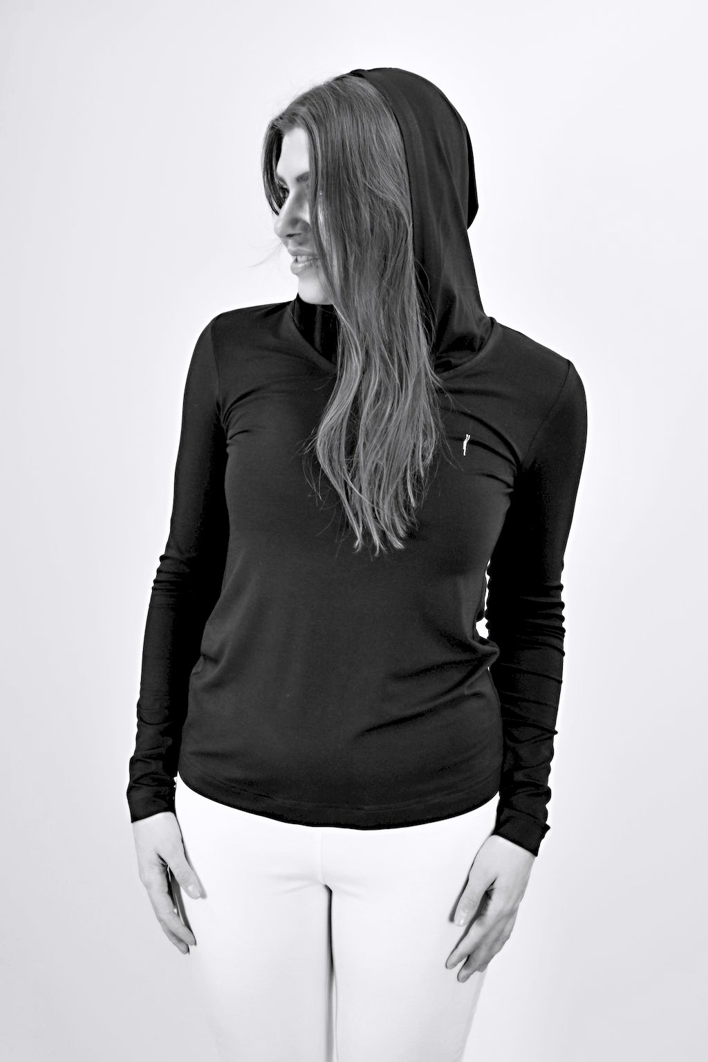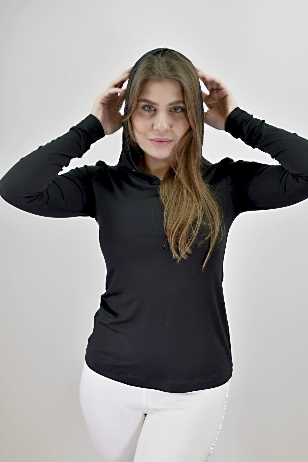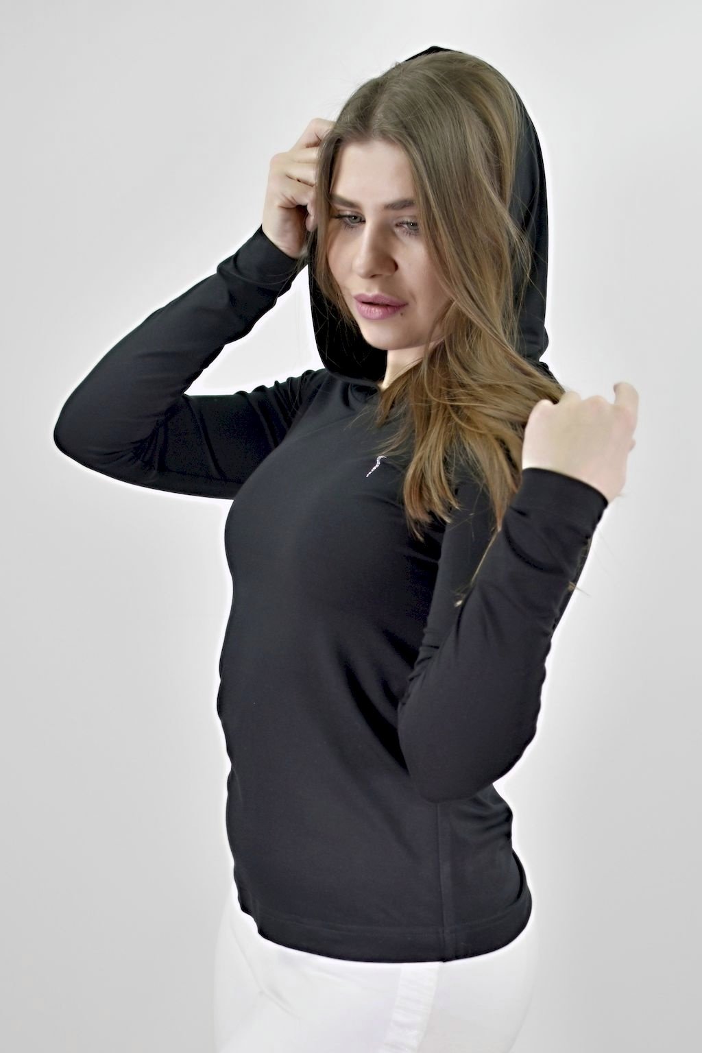 TRIKO ČERNÉ DÁMSKÉ S KAPUCÍ DLOUHÝ RUKÁV