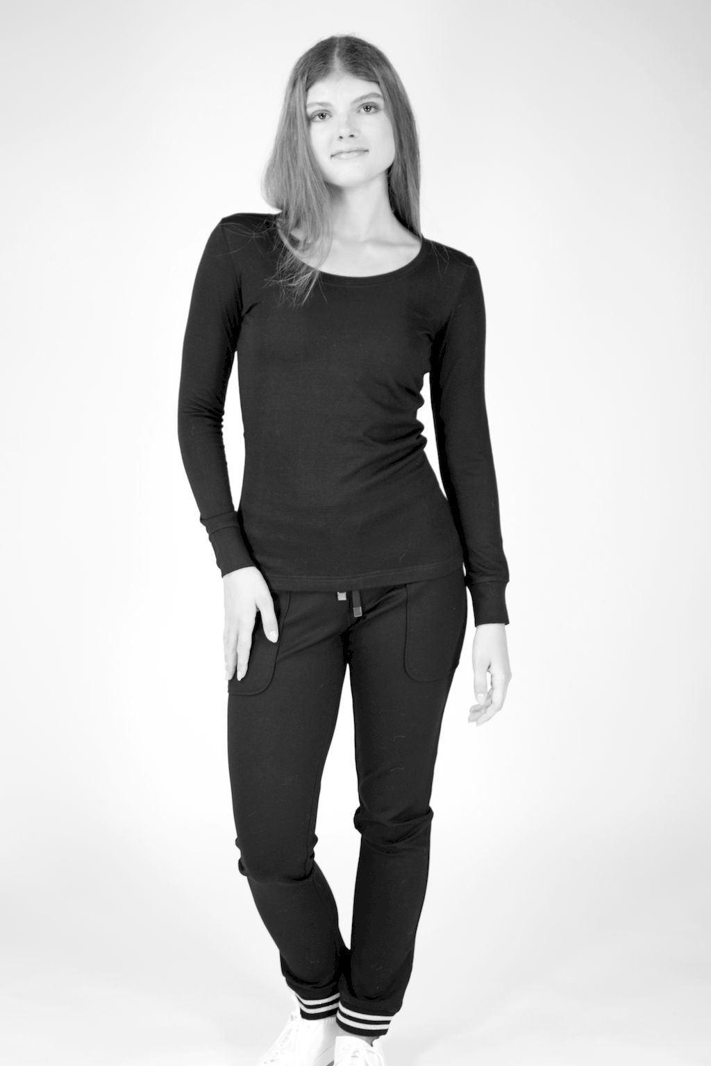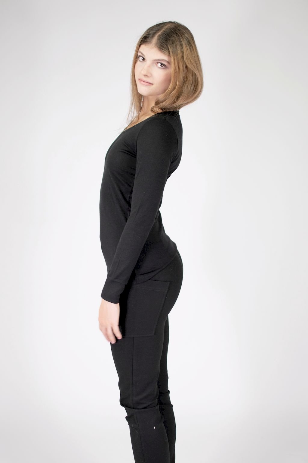 Dámské černé triko s dlouhým rukávem a kulatým výstřihem. Merino vlna se vyznačuje skvělými termoregulačními a přirozeně antibakteriálními vlastnostmi.
