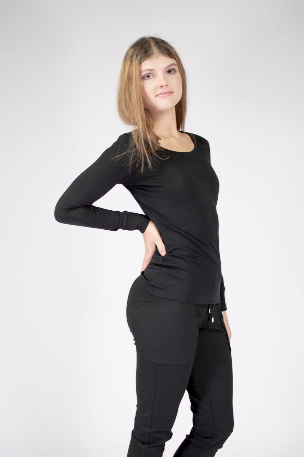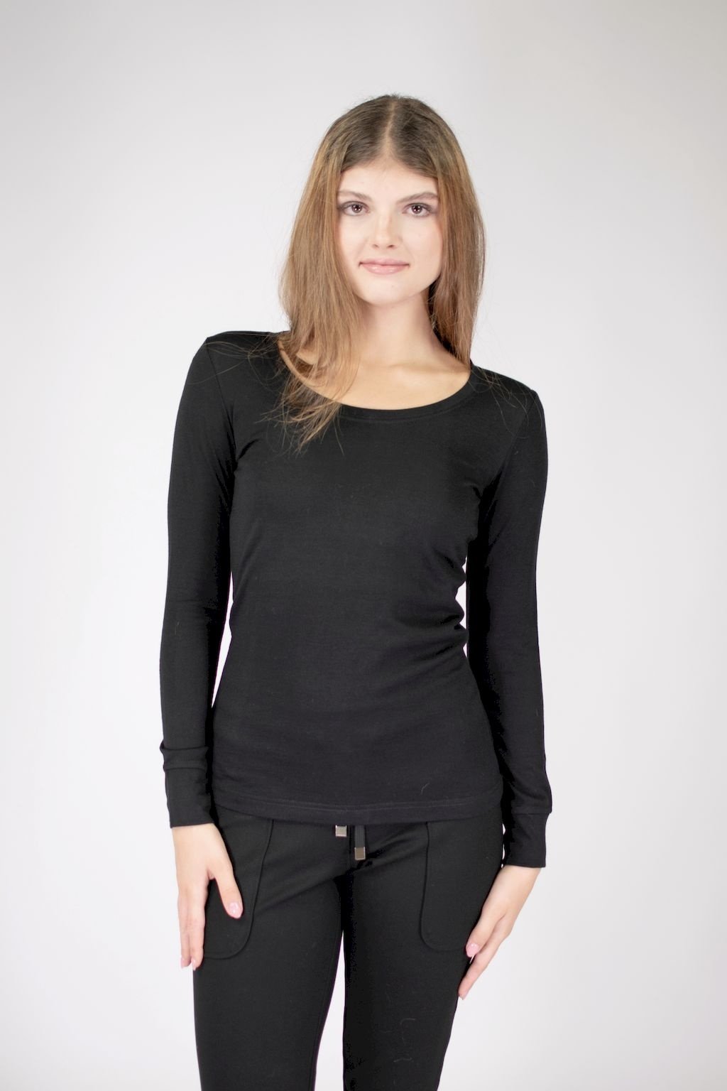 TRIKO DÁMSKÉ ČERNÉ KULATÝ VYSTŘIH DLOUHÝ RUKÁV - MERINO
