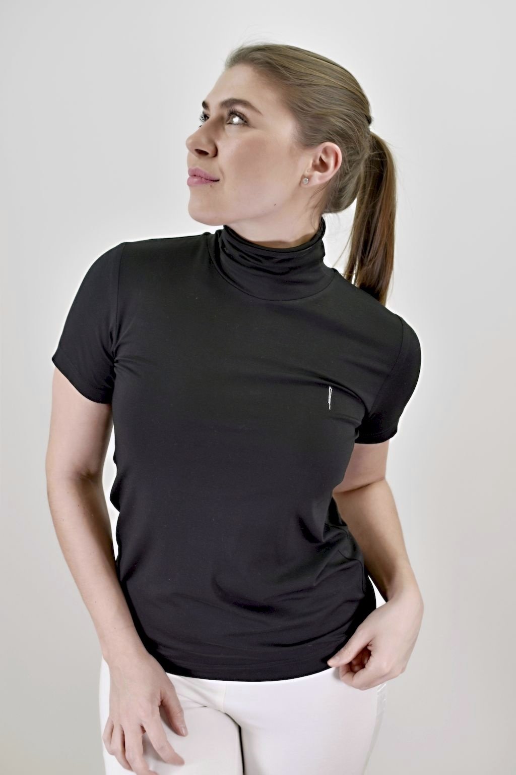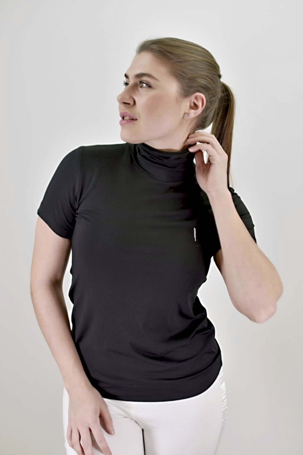 TRIKO DÁMSKÉ S KRÁTKÝM RUKÁVEM A ROLÁKEM - ČERNÉ