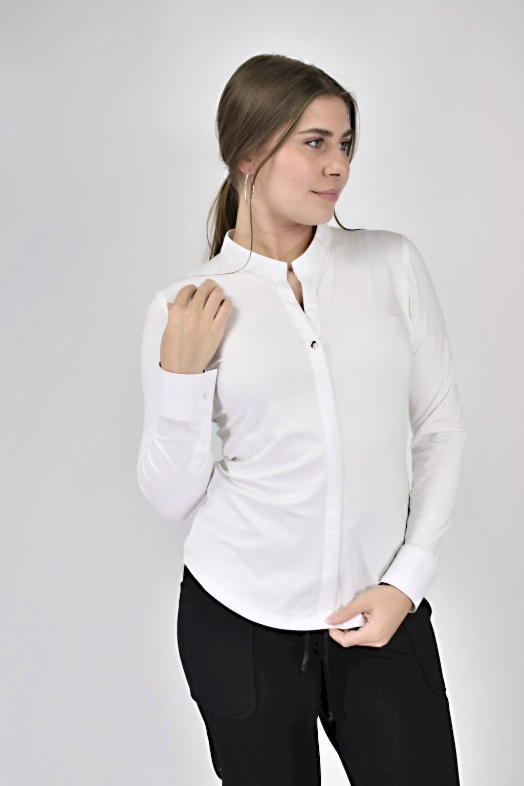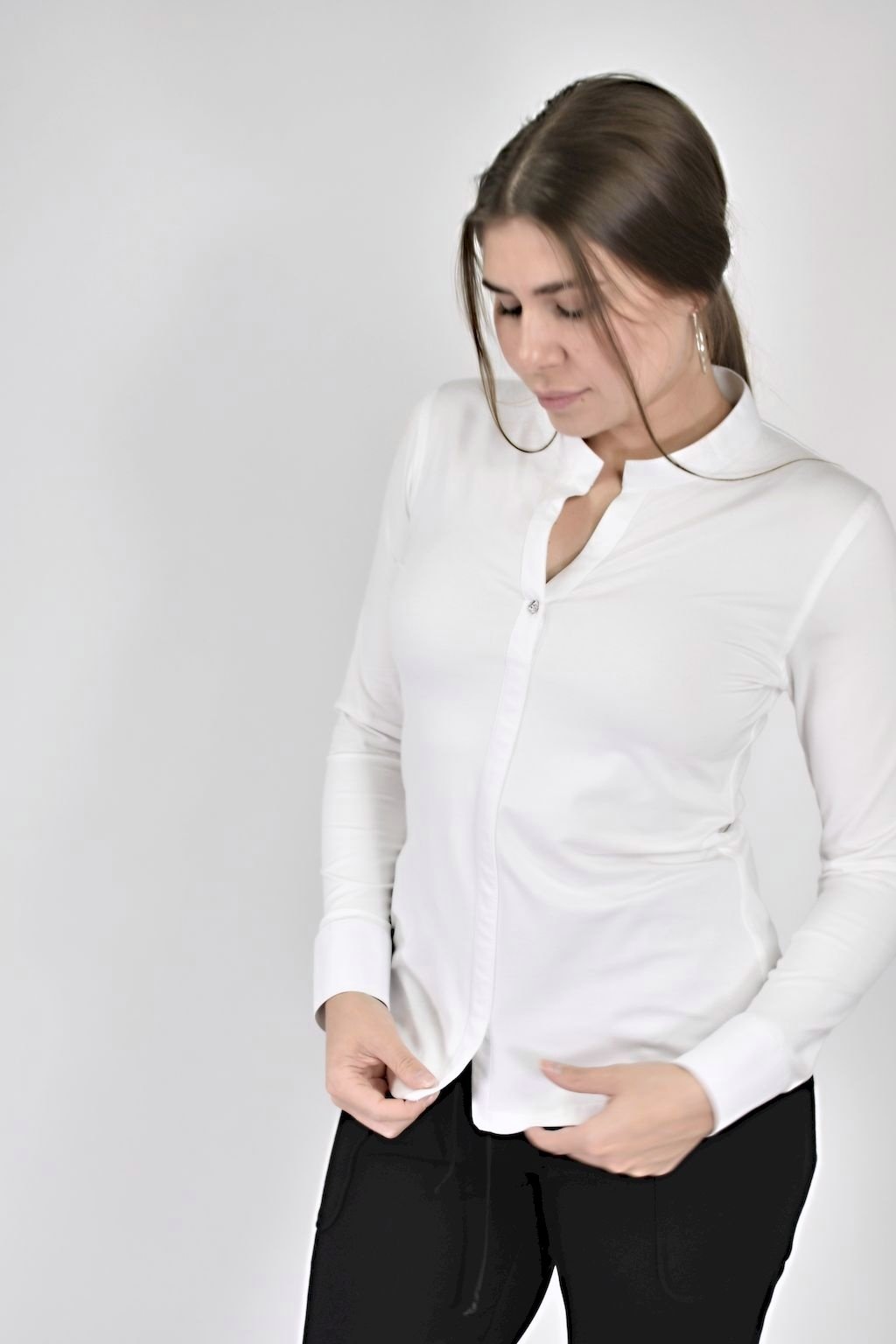 Úpletová košile s lesklým stojáčkem, manžetami a légou, s čirými broušenými knoflíčky, pro vaši eleganci, pohodlí a skvělý pocit.