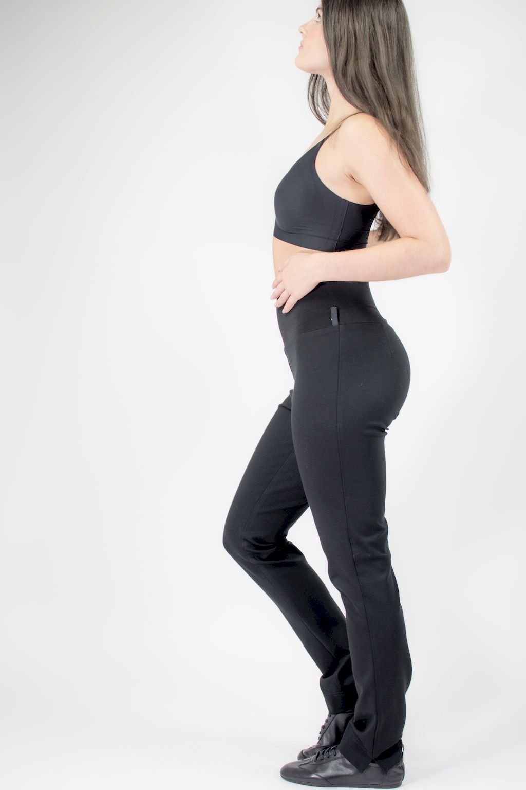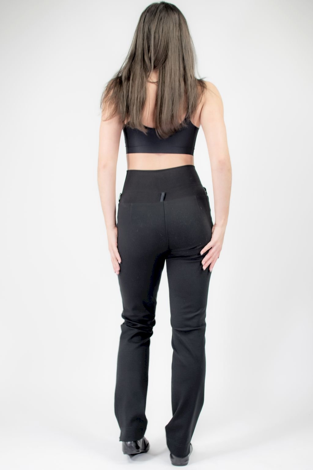 Dámské černé úzké kalhoty z pevného úpletu, pohodlný pružný pas s poutky na pásek. Kalhoty se snadno kombinují v nespočetném množství outfitů.