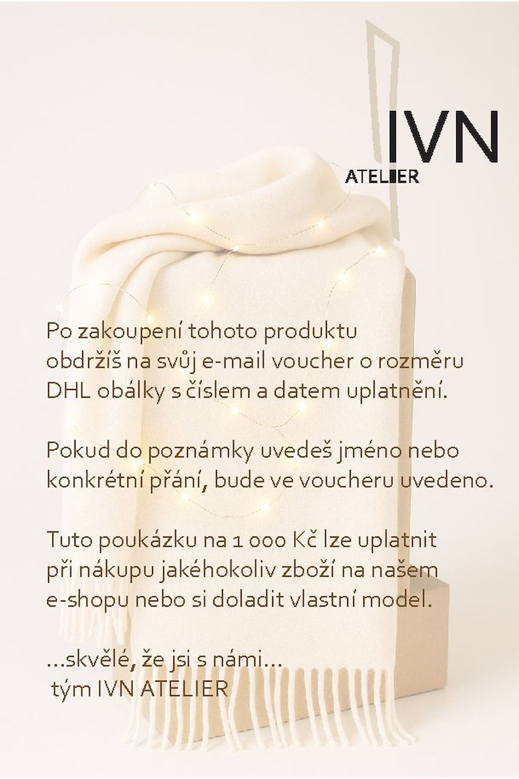 Při zakoupení tohoto dárkového voucheru na Tvůj e-mail přijde očíslovaný dárkový voucher v hodnotě 1 000 KČ, s platností na 6 měsíců od data pořízení. Voucher se vztahuje na veškeré zboží v našem e-shopu, včetně možnosti úpravy jednotlivých produktů dle přání zákazníka - více info o možnostech úprav našich produktů zde
