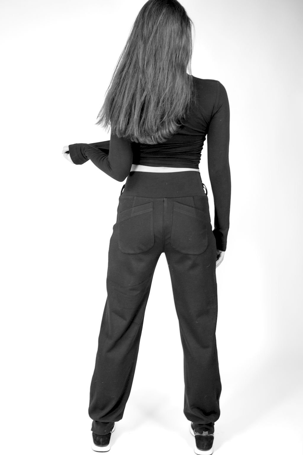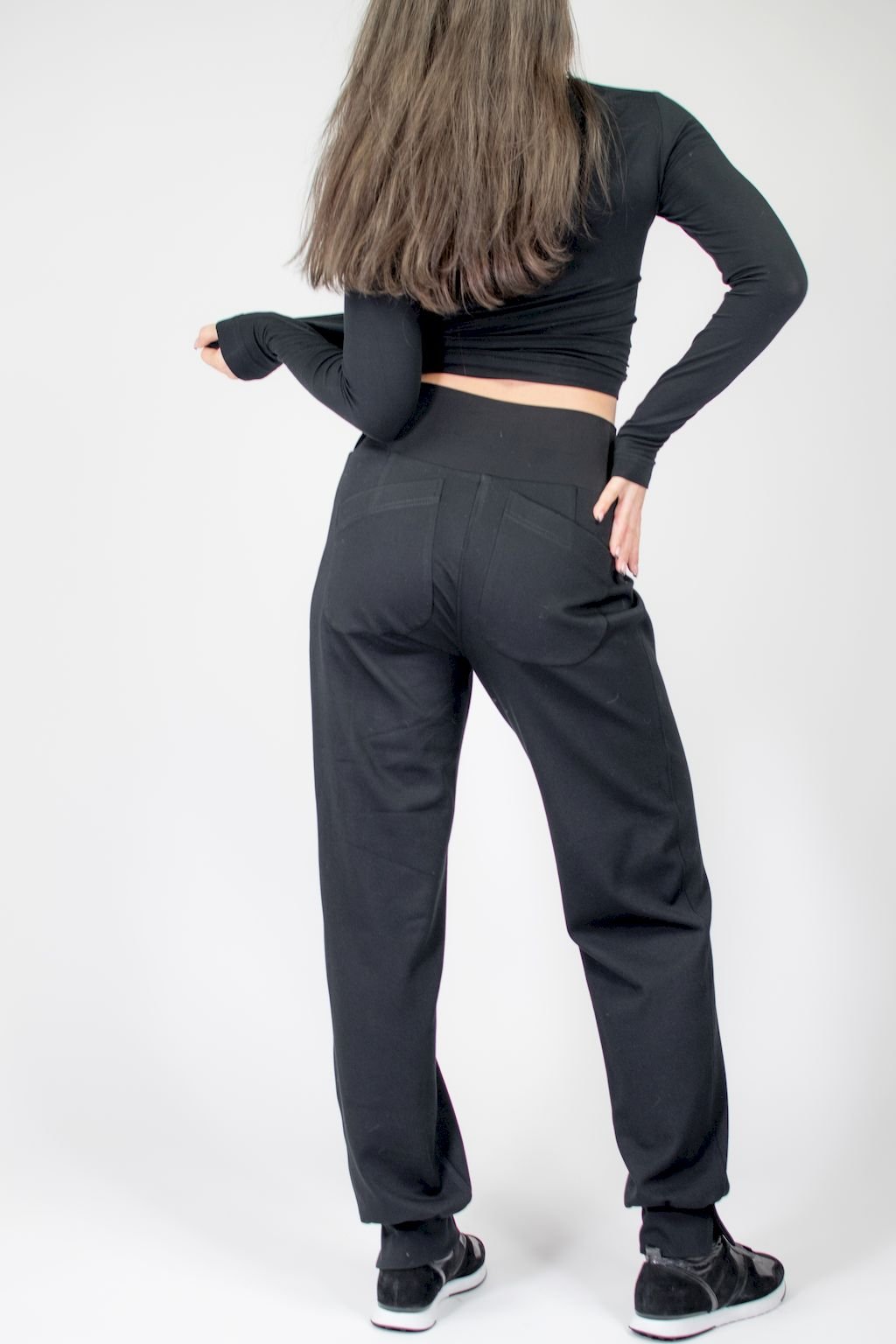 VOLNÉ ČERNÉ KALHOTY S KAPSAMI DO PRUŽNÉHO PASU A NÁPLETU